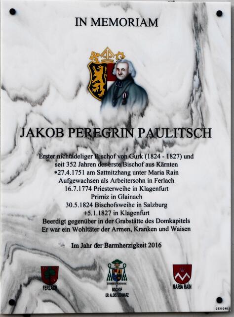 Am 2. Februar 2020 wurde Josef Marketz als erster Kärntner Slowene zum Bischof der Diözese Gurk, die ganz Kärnten umfasst, geweiht. Er ist aber nicht der erste Kärntner Slowene auf einem Bischofsstuhl. Lange zuvor war es ein Unterkärntner aus der Umgebung von Ferlach: Jakob Peregrin Paulitsch.