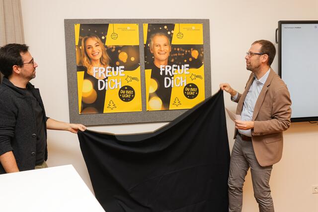 Bald werden sie überall hängen: Beatrice und Robert. Die beiden haben sich für die diesjährige Weihnachtskampagne der Katholischen Kirche Steiermark ablichten lassen. Beatrice Reicher (l.), Assistentin der Personalentwicklung, und Robert Hautz (Mitte), Pastoralreferent in Graz, geben der steirischen Kirche durch ihre tägliche Arbeit bereits ihr Gesicht – nun auch auf Plakaten, die in der Advent- und Weihnachtszeit steiermarkweit zu sehen sein werden. Aber nicht nur die beiden – auf allen Plakaten der diözesanen Jahreskampagne (Ostern, Sommerkirche u. a.) werden hauptamtliche MitarbeiterInnen der Diözese zu sehen sein. Im Rahmen einer Präsentation bedankte sich Helmut Schmidt (r.), Leiter des diözesanen Prozessbereichs Kommunikation, bei den Models für ihren Einsatz und ihre Bereitschaft, der Kirche „ihr Gesicht zu geben“.