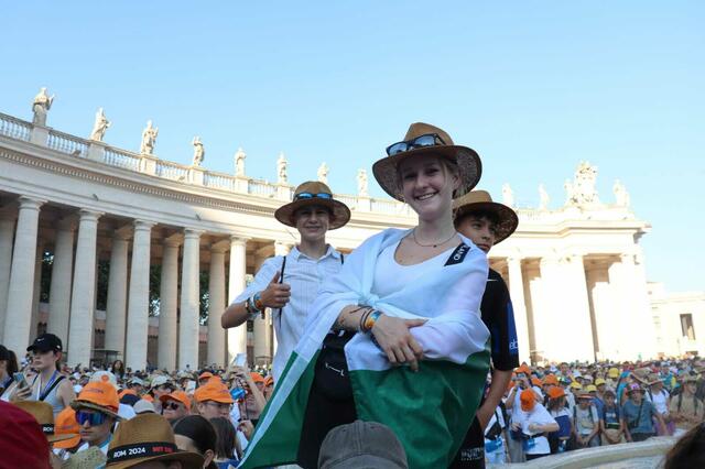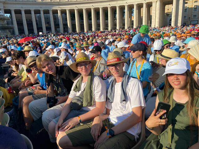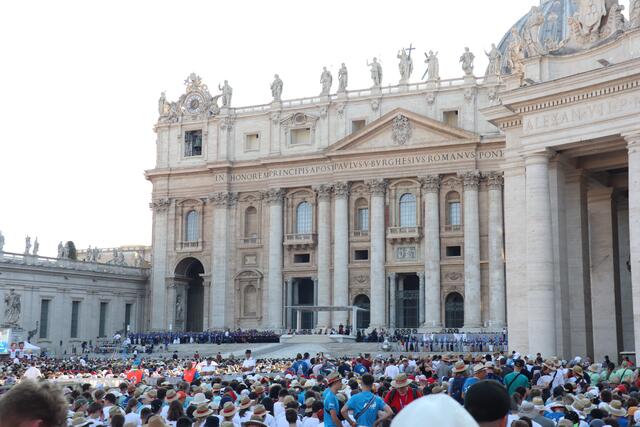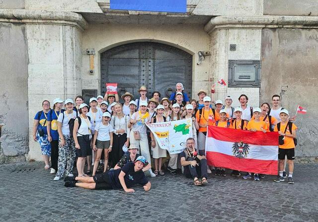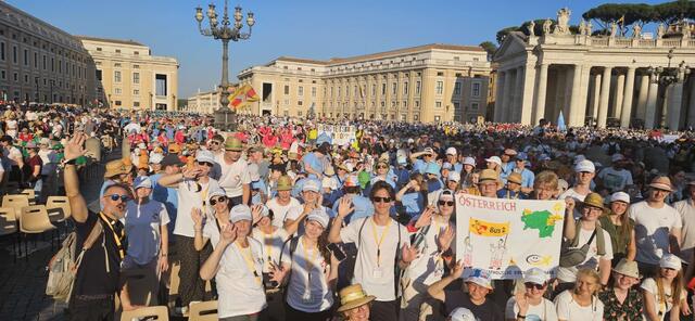 Der Höhepunkt der Wallfahrt war zweifellos der Dienstag, als sich der Petersplatz mit rund 50.000 Ministrantinnen und Ministranten aus aller Welt füllte. Trotz der sengenden Hitze herrschte eine lebendige Atmosphäre. Es wurde gesungen und geklatscht, und viele Minis tauschten Kappen und Pilgertücher aus. „Die Schweizer Garde einmal in echt zu sehen war mein Highlight“, erzählt Caro aus Graz-Mariatrost.