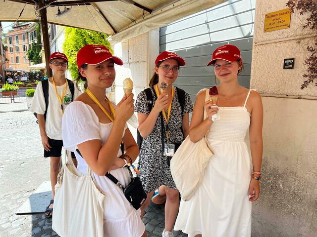 Die extremen Temperaturen von bis zu 40 Grad stellten eine besondere Herausforderung dar. Rom im Hochsommer zu erkunden war nicht nur spannend, sondern auch anstrengend. Viele Pausen und Zeiten zum Ausruhen mussten eingeplant werden, um sicherzustellen, dass alle Teilnehmenden gesund und munter blieben. „Rom ist wunderschön, aber die Hitze machte es manchmal wirklich hart. Trotzdem haben alle tapfer durchgehalten“, erzählt Antonia aus Weiz.