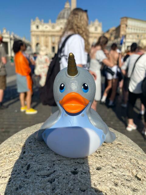 Während des Sendungsgottesdienstes hatte Diözesanbischof Krautwaschl erwähnt, dass er sich über eine Gummiente aus Rom freuen würde. Die Minis nahmen sich diese Bemerkung zu Herzen und besorgten während ihres Aufenthalts verschiedene Gummienten. Diese liebevolle Geste zeigte, wie sehr sie an ihren Bischof dachten und dass er symbolisch mit ihnen auf der Reise war. Die Gummienten begleiteten die Minis durch Rom und werden noch ihren Weg zum Bischof finden.