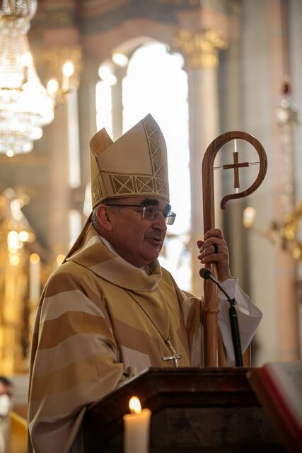 „So schön eine Pfeife auch sein mag und klingen mag: Erst im Zu- und Miteinander entfaltet sie ihre Berufung.“ Mit diesem Vergleich gab der Bischof der feiernden Gemeinde den Gedanken mit, dass unsere Entscheidungen Konsequenzen haben, für uns und für andere. So bedeutet die Freiheit des Menschen nicht nur Selbstbestimmung, sondern hat immer auch den anderen Menschen „am Schirm“.