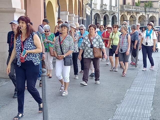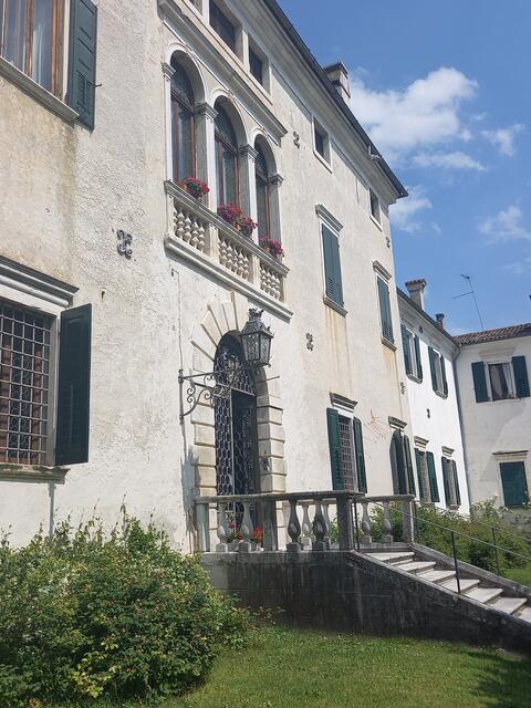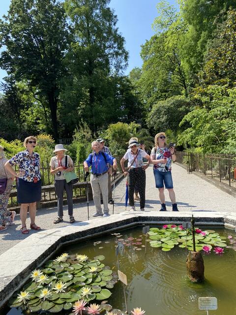 - Sacile. Rund um Sacile befindet sich das Weingut Vistorta. Neben einer Wein- und Käseverkostung stand dort der 30.000 m² große Garten im Mittelpunkt. Neben mehreren Teichen und Rosengärten konnte man auch einen 1 ha großen Bambuswald bestaunen. Zum Erinnerungsfoto versammelten wir uns vor der Villa Vistorta.