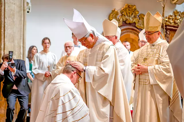 „Ihr versteht wirklich zu feiern!“, drückte Bischof Linus Seong-hyo Lee nach der Bischofsweihe von Johannes Freitag seine Freude aus. Beeindruckt vom übervollen Ägydiusdom, dem festlichen Gesang und den steirischen Trachten begegnete er den Mitfeiernden. Bischof Lee hat in Trier studiert und spricht gut Deutsch. „Griaß di!“, „Guat hat’s g’schmeckt“, wiederholte er mit vergnügtem Lächeln.