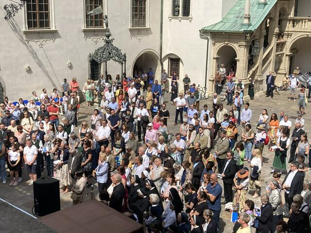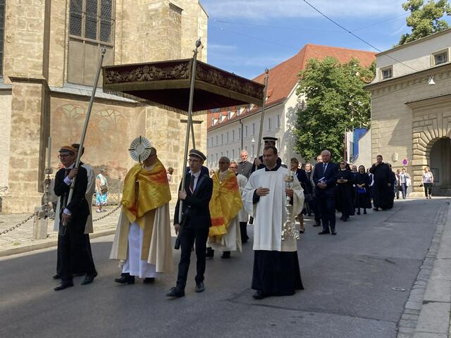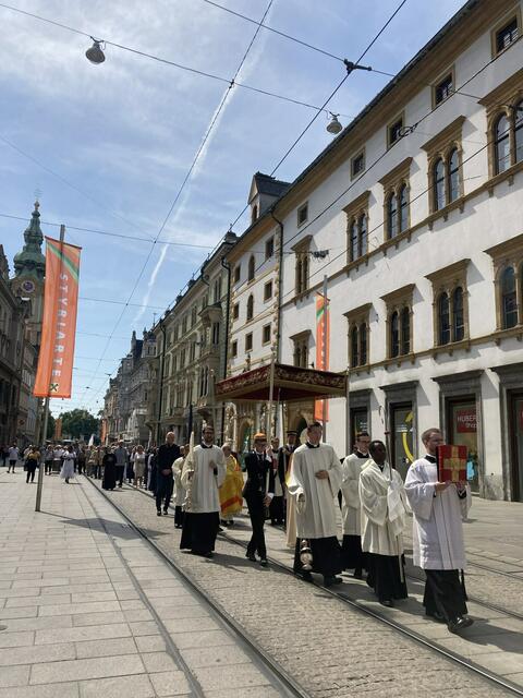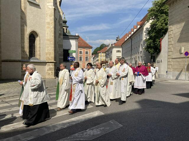Grazer Fronleichnamsprozession führte zum Katholikentagskreuz. Die Grazer Fronleichnamsfeier stand dieses Jahr unter dem Motto „Denn ich will Frieden geben im Land“. Bischof Wilhelm Krautwaschl zelebrierte im Grazer Dom die festliche Messe in großer Gemeinschaft. Danach führte die Prozession erstmals durch den Grazer Stadtpark zum „Katholikentagskreuz“ am Platz der Versöhnung. In seiner „Meditation vor dem Allerheiligsten“ (siehe Seite 23) erinnerte Bischof Wilhelm Krautwaschl an die...