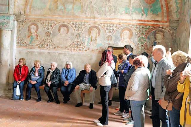 GEBURTSTAGSFAHRT. Anlässlich des 80. Geburtstags ihres Seelsorgers Karl Natiesta haben PGR und WR der Pfarren Kobenz und St. Lorenzen ein besonderes Geschenk organisiert. Mit dem Bus ging es nach Gurk. Im Dom übernahm das Geburtstagskind persönlich die Führung (im Bild sitzend in der Bischofskapelle) – hatte Pfarrer Natiesta doch als Theologiestudent über viele Jahre im Gurker Dom geführt.