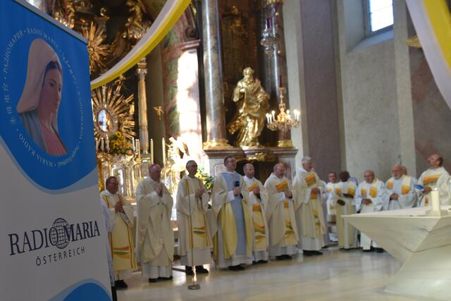 P. Timotheus Juric und P. Benjamin Schweighofer feierten mit der Pfarrgemeinde – mit drei Jahren Verspätung – das 900-Jahr-Jubiläum. Dabei waren auch die Vereine von Purk stark vertreten.  | Foto: zVg