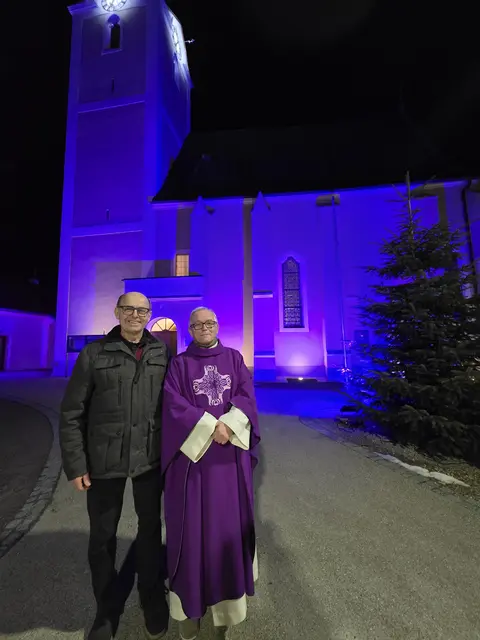 „Die liturgischen Farben im Kirchenjahr zeigen sich sowohl in der Farbe des Messgewandes bzw. der Stola von Priester und Diakon als auch der Kerzen, Altartücher u. v. m.“, erinnert der Mesner von Winklarn, Karl Hrubicek. Um das besser zu veranschaulichen, kann nun die Pfarrkirche zu diesen geprägten Zeiten außen und innen (Hochaltar) in den verschiedenen Farben beleuchtet werden: Für die 40-tägige Osterzeit wird Violett verwendet – besonders stimmig war dies bereits am Aschermittwoch zu sehen...